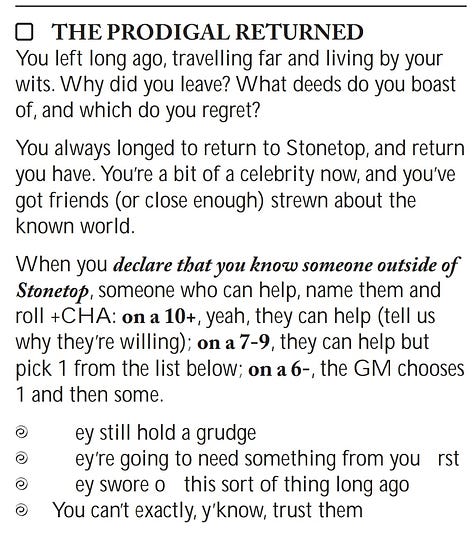 • Homebrew World, Game etc. So this is my Stonetop [Aethercliffe], my Lygos [Lykost], reflavoured and recontextualized for My setting.