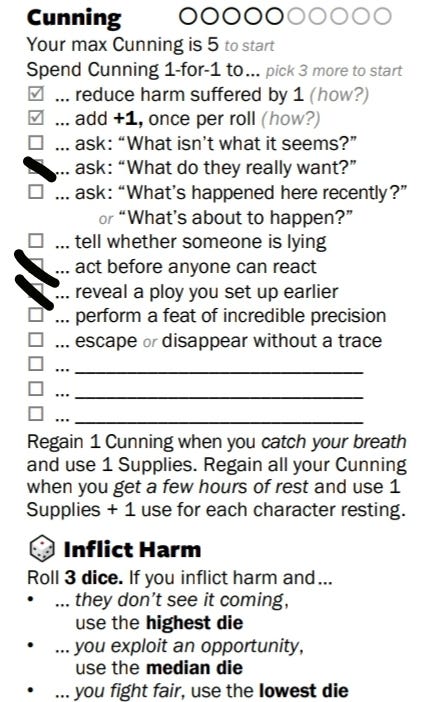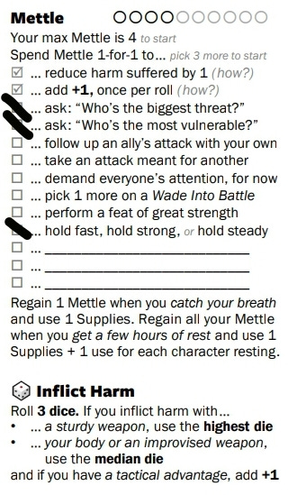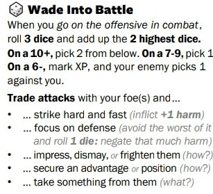 Even though this is a catchall move it still allows us to specialize some. When we take 3 dice instead of 2 that is considered our Specialty or focus.