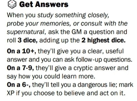 Though these points have different names for each character type, they all function the same. When you spend a point, you just do the thing, so long as it is reasonable. If it’s asking a question, the GM will answer honestly. The exception is for magic, which requires a roll.